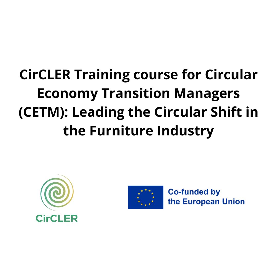 The CirCLER project presents the online course "Circular Economy Transition Manager (CETM): Leading the Circular Transition in the Furniture Industry", a pioneering programme designed to train professionals who will lead the transition of the furniture and habitat sector towards truly circular models.